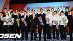 [OSEN=민경훈 기자] 10일 오후 서울 올림픽공원 SK핸드볼경기장 보조경기장에서 열린 SK루브리컨츠 핸드볼팀 창단식에서 최태원 대한핸드볼협회장(SK 그룹 회장)과 코치진 및 선수들이 파이팅을 외치고 이삳. 김운학 감독이 이끄
