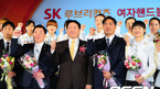 [OSEN=민경훈 기자] 10일 오후 서울 올림픽공원 SK핸드볼경기장 보조경기장에서 열린 SK루브리컨츠 핸드볼팀 창단식에서 최태원 회장과 선수들 및 관계자들이 화이팅을 외치고 있다. 김운학 감독이 이끄는 SK는 이번 여자핸드볼