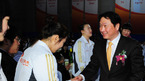 [OSEN=민경훈 기자] 10일 오후 서울 올림픽공원 SK핸드볼경기장 보조경기장에서 열린 SK루브리컨츠 핸드볼팀 창단식에서 최태원 대한핸드볼협회장(SK 그룹 회장)이 선수들과 악수를 나누고 있다. 김운학 감독이 이끄는 SK는 이번
