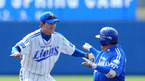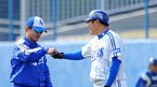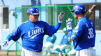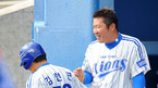 [OSEN=온나(오키나와), 이대선 기자] 10일 일본 오키나와 온나 아카마구장에서 진행된 삼성 스프링캠프에서 가진 자체평가전, 4회말 1사 2루에서 백팀 최형우가 1타점 적시타를 치고 1루에서 장재중 코치와 하이파이브를 하고 있