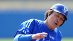 [OSEN=온나(오키나와), 이대선 기자] 10일 일본 오키나와 온나 아카마구장에서 진행된 삼성 스프링캠프에서 가진 자체평가전, 3회무 2사 1,2루에서 백팀 정인욱이 청팀 우동균을 내야땅볼로 처리하고 웃으며 덕아웃으로 가고 있다