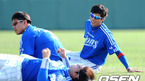 [OSEN=차탄(오키나와), 이대선 기자] 12일 일본 오키나와 차탄 구장에서 열린 삼성 라이온즈와 주니치 드래건스의 경기, 경기를 마친 삼성 조영훈과 강명구가 스트레칭 운동을 하면 미소를 짓고 있다. 괌에서 실시한 1차 전지 훈