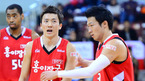 [OSEN=안양 ,백승철 기자] 15일 오후 안양 실내체육관에서 열린 '2011-2012 KB국민카드 프로농구' 안양 인삼공사와 인천 전자랜드의 경기 2쿼터 인삼공사 박찬희 이정현이 서로를 격려하고 있다. 이상범 지휘하는 안양 인삼공사는 지