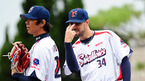 [OSEN=우라소에(오키나와)=지형준 기자] 17일 오전 야쿠르트 스왈로스의 '수호신' 임창용이 일본 오키나와 우라소에 구장에서 훈련을 가졌다. 임창용과 토니 바네트가 수비 훈련을 하고 있다. 이날 오후 야쿠르트 스왈로스는 '아