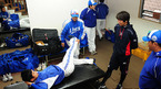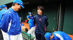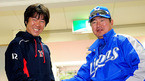 [OSEN=우라소에(오키나와)=지형준 기자] 17일 오후 일본 오키나와 우라소에 구장에서 삼성 라이온스와 야쿠르트 스왈로스의 연습경기가 열렸다. 경기에 앞서 야쿠르트 임창용이 삼성 더그아웃을 찾아와 인사를 나누고 있다./jpnew