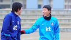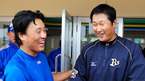 [OSEN=영암 ,백승철 기자] 21일 오전 전남 영암군 현대삼호중공업 사계절잔디구장에서 열린 축구대표팀 훈련에서 김상식이 박충균 코치와 이야기를 나누고 있다. 8회 연속 월드컵 본선 진출을 노리는 최강희호는 지난 18일 밤 영