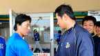 [OSEN=온나(오키나와)=지형준 기자] 21일 오후 일본 오키나와 온나 아카마구장에서 삼성 라이온즈와 오릭스 버팔로의 연습경기가 열렸다. 오릭스 이대호가 경기장에 도착하며 삼성 류중일 감독과 인사를 나누고 있다./jpnews@osen.co.
