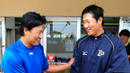 [OSEN=온나(오키나와)=지형준 기자] 21일 오후 일본 오키나와 온나 아카마구장에서 삼성 라이온즈와 오릭스 버팔로스의 연습경기가 열렸다. 경기전 삼성 류중일 감독이 오릭스 오카다 감독에게 선물을 전달하고 있다./jpnews@osen.co.