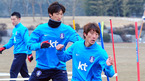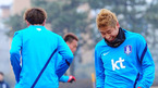 [OSEN=영암 ,백승철 기자] 21일 오전 전남 영암군 현대삼호중공업 사계절잔디구장에서 열린 축구대표팀 훈련에서 이동국 김신욱이 몸을 풀고 있다. 8회 연속 월드컵 본선 진출을 노리는 최강희호는 지난 18일 밤 영암에 소집돼 19