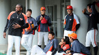 [OSEN=오키나와,지형준 기자] 한화 이글스가 22일 오전 일본 오키나와 카데나 구장에서 2차 스프링캠프 훈련을 가졌다. 한화 바티스타가 오전 훈련 도중 "배고파"를 외치며 동료선수들과 이야기를 나누고 있다. 한편 한화는 지난
