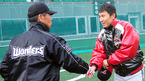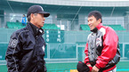 [OSEN=고양 ,백승철 기자] 8일 오후 고양시 고양국가대표 야구훈련장에서 열린 고양 원더스와 LG 2군의 평가전 경기 종료 후 고양 원더스 김성근 감독과 LG 이대진이 이야기를 나누고 있다. 한국 최초의 독립야구단 고양 원더스가