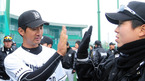 [OSEN=고양 ,백승철 기자] 8일 오후 고양시 고양국가대표 야구훈련장에서 열린 고양 원더스와 LG 2군의 평가전 경기 종료 후 고양 원더스 코우노 코치(오른쪽)와 안태영이 하이파이브를 하고 있다. 한국 최초의 독립야구단 고양