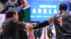 [OSEN=부산,박준형 기자] 10일 오후 부산 사직실내체육관서 열린 '2011-2012 KB국민카드 프로농구' 6강 플레이오프 2차전 부산 KT와 인천 전자랜드의 경기 2쿼터 KT 전창진 감독이 슛블록에 성공한 로드와 하이파이브를 하고 있다. 지난