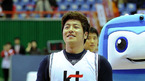 [OSEN=부산,박준형 기자] 10일 오후 부산 사직실내체육관서 열린 '2011-2012 KB국민카드 프로농구' 6강 플레이오프 2차전 부산 KT와 인천 전자랜드의 경기 전 롯데 강민호가 시투를 마친 후 아쉬워하고 있다. 지난 8일 전자랜드가 KT와