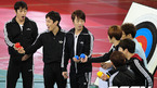 [OSEN=지형준 기자] 15일 오후 서울 잠실 학생체육관에서 열린 JTBC '신화방송' 현장공개 및 제작발표회에서 신화가 양궁 종목을 겨루기에 앞서 팀을 나누고 있다. 올해 데뷔 14주년을 맞이한 국내 최장수 아이돌 그룹 신화 6명의