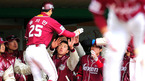 [OSEN=문학,박준형 기자]24일 오후 인천 문학구장서 열린 2012 프로야구 시범경기 SK 와이번스와 넥센 히어로즈의 경기 2회초 넥센 송지만이 솔로홈런을 날린 후 동료들의 축하를 받고 있다 사상 첫 700만 관중을 목표로 세운 프로