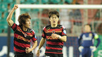 [OSEN=탄천종합운동장, 이대선 기자] 30일 오후 경기도 성남 탄천종합운동장에서 열린 '현대오일뱅크 K리그 2012' 성남 일화와 부산 아이파크의 경기, 후반 부산 김창수가 선제골을 성공시키고 코칭스태프와 환호하고 있다. 성남