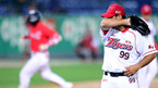 [OSEN=광주 ,백승철 기자] 3일 오후 광주구장에서 열린 '2012 팔도 프로야구' KIA 타이거즈와 SK 와이번스의 경기 8회초 1사 3루 최정에게 투런포를 내준 라미레즈가 땀을 닦고 있다. SK는 초반 상승세가 주춤하면서 시즌 9승 7패(3위)