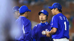 [OSEN=부산,박준형 기자] 8일 오후 부산 사직구장에서 열리는 2012 팔도 프로야구 롯데 자이언츠와 삼성 라이온즈의 경기 8회말 2사 2루 삼성 오치아이 투수 코치가 마운드에 올라와 윤성환 선발투수와 이야기를 나누고 있다. 7위까
