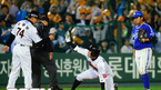 [OSEN=부산,박준형 기자] 10일 오후 부산 사직구장에서 열린 2012 팔도 프로야구 롯데 자이언츠와 삼성 라이온즈의 경기 7회말 무사 1루 롯데 홍성흔이 진루타를 날렸다. 1루 주자 전준우가 3루까지 진루하고해 세이프됐다. 박석민