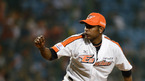 [OSEN=대전, 이대선 기자] 10일 오후 대전 한밭야구장에서 열린 '2012 팔도 프로야구' 한화 이글스와 KIA 타이거즈의 경기, 9회초 한화 마일영과 교체된 바티스타가 힘차게 공을 던지고 있다. 한화 우완 양훈(26)과 KIA 우완 서재응(35)