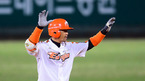 [OSEN=청주,박준형 기자] 11일 오후 충북 청주구장에서 열린 2012 팔도 프로야구 한화 이글스와 롯데 자이언츠의 경기 7회말 2사 2,3루 한화 강동우가 2타점 적시타를 날리고 2루에 세이프되고 있다. '코리안특급' 한화 박찬호가 올해