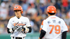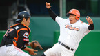 [OSEN=대전, 이대선 기자] 13일 오후 대전 한밭야구장에서 열린 '2012 팔도 프로야구' 한화 이글스와 롯데 자이언츠의 경기, 5회말 1사 2,3루 한화 이대수의 2타점 적시타때 홈을 밟은 2루주자 최진행이 심판을 바라보고 있다. 류현진