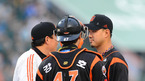 [OSEN=인천, 곽영래 기자] 13일 오후 인천 문학야구장에서 열린 '2012 팔도 프로야구' SK 와이번스와 넥센 히어로즈의 경기 6회말 1사 1루 넥센 정민태 코치가 마운드에 올라 강윤구와 이야기를 하고 있다. 넥센은 전날 패배를 설욕하