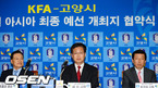 [OSEN=민경훈 기자] 14일 오후 서울 종로구 신문로 축구회관 1층에서 열린 ‘대한축구협회(KFA)-고양시 월드컵 아시아 최종 예선 개최지 협약식’에서 조중연 회장과 최성 고양시장, 그리고 최강희 국가대표팀 감독이 참석하고 있