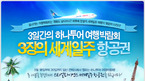 - ‘2012 하나투어 여행박람회’ 기념, 총 3명에게 세계일주 항공권 추첨 증정 [OSEN=강희수 기자]㈜하나투어(대표이사 최현석)가 오는18일부터 20일까지 일산 킨텍스에서 열리는 ‘2012 하나투어 여행박람회’ 기간 동안관람객들에