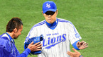 [OSEN=대구, 민경훈 기자] 15일 오후 대구구장에서 열린 '2012 팔도 프로야구' 삼성 라이온즈와 KIA 타이거즈의 경기에서 7회말 2사 주자 1,3루 삼성 박한이가 즁견수 앞 1타점 적시타를 날린 후 1루에서 김태균 코치와 하이파이브를