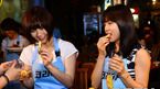 [OSEN=박준형 기자] 15일 오후 서울 압구정 한 포차에서 진행된 영화 '코리아' 일일포차에서 배우 배두나와 하지원이 맥주를 마신 뒤 감자를 먹고 있다 배우 하지원과 배두나가 출연하는 영화 '코리아'는 1991년 일본 지바에서 열린