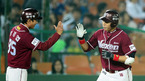 [OSEN=부산, 민경훈 기자] 16일 오후 사직구장에서 열린 '2012 팔도 프로야구' 롯데 자이언츠와 넥센 히어로즈와의 경기에서 6회초 1사 주자 1루 홈런 레이스 선두 넥센 강정호가 좌월 투런 홈런을 날린 후 홈에서 박병호와 하이파