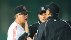[OSEN=부산, 민경훈 기자] 16일 오후 사직구장에서 열린 '2012 팔도 프로야구' 롯데 자이언츠와 넥센 히어로즈와의 경기에서 4회말 2사 주자 1루 롯데 강민호 타석에서 롯데 양승호 감독이 넥센 선발 김영민이 보크를 범한것이 아니