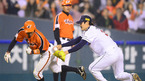 [OSEN=잠실,박준형 기자] 16일 오후 서울 잠실구장에서 열리는 2012 팔도 프로야구 두산 베어스와 한화 이글스의 경기 8회초 무사 1,3루 한화 고동진의 내야땅볼때 두산 노경은 투수가 3루 주자 백승룡을 태그아웃 시키고 있다 두산