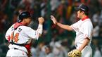 [OSEN=부산, 민경훈 기자] 16일 오후 사직구장에서 열린 '2012 팔도 프로야구' 롯데 자이언츠와 넥센 히어로즈와의 경기에서 넥센은 선발 김영민의 7이닝 무실점 호투와 6회 강정호의 쐐기 투런포로 롯데에 8-0 영봉승을 거두고 위