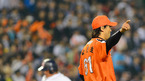 [OSEN=잠실, 이대선 기자] 17일 오후 서울 잠실야구장에서 열린 '2012 팔도 프로야구' 두산 베어스와 한화 이글스의 경기, 4회말 2사 한화 박찬호가 두산 최준석에게 우전 안타를 허용하고 땀을 닦고 있다. 한화 이글스의 '원조 코리