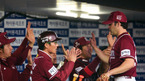 [OSEN=부산, 민경훈 기자] 17일 오후 사직구장에서 열린 '2012 팔도 프로야구' 롯데 자이언츠와 넥센 히어로즈와의 경기에서 4회를 마치고 덕아웃에서 넥센 선발 나이트가 동료들과 하이파이브를 하고 있다. 최근 9경기서 1승 1무 7