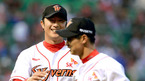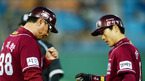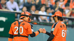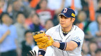 [OSEN=잠실, 이대선 기자] 17일 오후 서울 잠실야구장에서 열린 '2012 팔도 프로야구' 두산 베어스와 한화 이글스의 경기, 2회말 2사 한화 박찬호가 두산 양의지를 삼진으로 처리하고 포수 정범모와 하이파이브를 하고 있다. 한화
