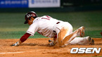 [OSEN=목동,박준형 기자] 18일 오후 서울 목동구장에서 열린 2012 팔도 프로야구 넥센 히어로즈와 삼성 라이온즈의 경기 6회말 2사 1,2루 넥센 장기영의 1타점 적시타때 2루 주자 서건창이 삼성 진갑용의 태그를 피해 득점을 올리고