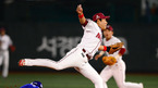 [OSEN=목동, 고유라 기자] 넥센 히어로즈의 '핵잠수함' 김병현(33)이 홈팬들 앞에서 국내 선발 데뷔전을 가졌다. 김병현은 18일 목동구장에서 열린 '2012 팔도 프로야구' 삼성 라이온즈전에서 4⅔이닝 6피안타 6탈삼진 2볼넷 1사구 3