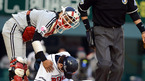[OSEN=대전, 민경훈 기자] 19일 오후 대전 한밭야구장에서 열린 '2012 팔도 프로야구' 한화 이글스와 SK 와이번스의 경기에서 6회초 2사 주자 없는 상황에서 SK 조인성이 좌월 솔로 홈런을 날린 후 홈으로 들어오며 배트를 줍고 있다.