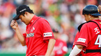 [OSEN=대전, 민경훈 기자] 19일 오후 대전 한밭야구장에서 열린 '2012 팔도 프로야구' 한화 이글스와 SK 와이번스의 경기에서 6회초를 마친 후 한화 선발 류현진이 아쉬워하며 고개를 숙인채 덕아웃으로 향하고 있다. 한화 '괴물 에