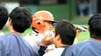 [OSEN=잠실, 곽영래 기자] 19일 오후 서울 잠실야구장에서 열린 '2012 팔도 프로야구' 두산 베어스와 LG 트윈스의 경기 6회초 2사 1,2루 LG 김태군이 좌전 안타를 치자2루 주자 LG 이병규가 홈으로 쇄도하다태그아웃 당하고 있다. LG는 19