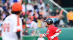 [OSEN=대전, 민경훈 기자] 19일 오후 대전 한밭야구장에서 열린 '2012 팔도 프로야구' 한화 이글스와 SK 와이번스의 경기에서 6회초 2사 주자 없는 상황에서 SK 조인성이 좌월 솔로 홈런을 날리고 있다. 한화 '괴물 에이스' 류현진(25)