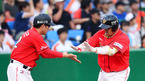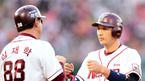 [OSEN=대전, 민경훈 기자] 19일 오후 대전 한밭야구장에서 열린 '2012 팔도 프로야구' 한화 이글스와 SK 와이번스의 경기에서 5회말 무사 주자 1루 한화 강동우가 우월 투런홈런을 날린 후 덕아웃에서 동료들과 하이파이브를 하고