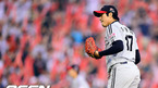 [OSEN=잠실,박준형 기자] 20일 오후 서울 잠실구장에서 열린 2012 팔도 프로야구 두산 베어스와 LG 트윈스의 경기 7회말 1사 1루 두산 이성열을 스트라이크 낫아웃으로 잡은 LG 유원상 투수가 미소 지으며 더그아웃으로 들어가고 있