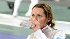 [OSEN=올림픽공원, 민경훈 기자] 20일 올림픽공원 SK핸드볼경기장서 열린 2012 SK텔레콤 국제그랑프리 펜싱 선수권대회 여자 플뢰레 16강전서 발렌티나 베잘리(이탈리아, 세계랭킹 1위)이 전희숙과 대결 중 휴식시간에 앉아서 물을