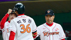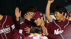 [OSEN=잠실,지형준 기자] 22일 오후 서울 잠실구장에서 열린 '2012 팔도 프로야구' LG 트윈스와 넥센 히어로즈의 경기, 7회말 2사 2,3루의 위기를 넘긴 넥센 오재영이 더그아웃에서 동료선수들의 축하를 받고 있다. 양팀에게 물러설