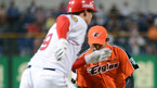 [OSEN=광주, 이대선 기자] 23일 오후 광주 무등야구장에서 열린 '2012 팔도 프로야구' KIA 타이거즈와 한화 이글스의 경기, 4회말 무사 1루 한화 박찬호가 KIA 김상훈의 번트 타구를 잡고 있다. 메이저리그 124승의 코리안특급 박찬호와